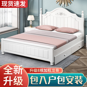 美式实木床.米轻奢双人床现代简约.米储物婚床欧式主...