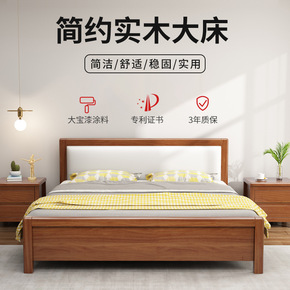 实木床现代简约1.8m双人床简易出租房用小户型1....