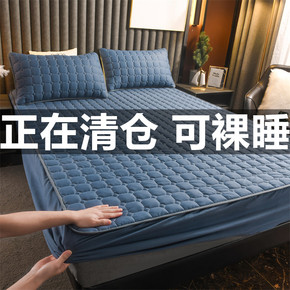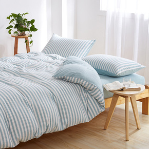床笠针织棉天竺棉四件套裸睡简约条纹全棉床上用品被套...