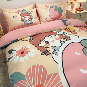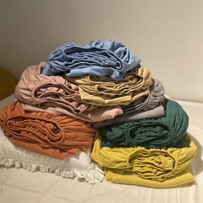 网红款日式纯色水洗棉床单四件套春秋简约ins被套三...