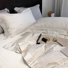 高端轻奢120支长绒棉四件套线条全棉被套纯棉简约床...