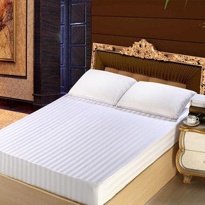 【床笠床罩】宾馆酒店纯棉床笠白色松紧床罩涤棉耐用保...