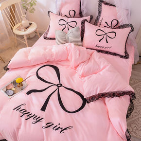 .韩版水洗磨毛床裙四件套春夏清新蕾丝双花边被套公主...