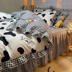 水洗棉床单被子四件套床裙款温柔风被套被罩宿舍三件套...