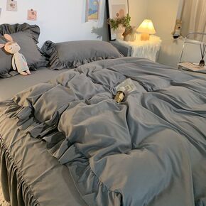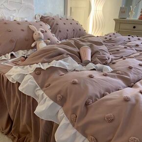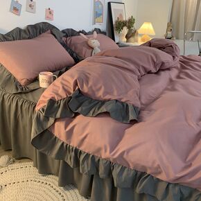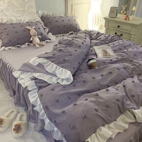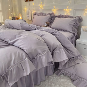 公主风紫色床裙双层花边被套床单四件套纯色少女心单人...
