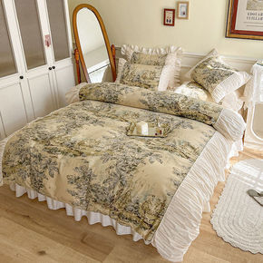 纯棉文艺复古人物画四件套全棉被套床裙三件套韩国公主...