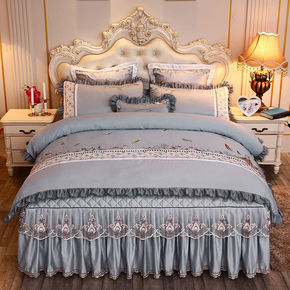欧式简约四件套全面亲肤床裙新款床单床罩纯色刺绣被套...