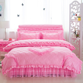 纯棉韩版公主碎花四件套蕾丝花边被套床单床裙婚庆粉韩...