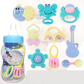 跨境婴儿摇铃玩具新生儿礼盒套装宝宝牙胶手鼓摇铃抓握...