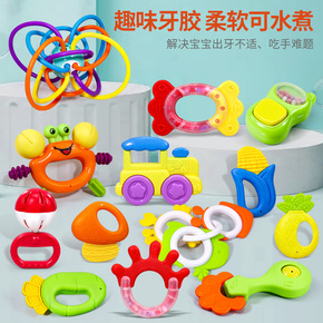 出口婴儿磨牙咬胶0-1岁新生宝宝6个月牙胶手摇铃玩...