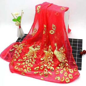 丝巾女夏季薄款孔雀开屏烫金纱巾库存尾货摆地摊活动礼...