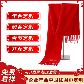 红围巾定制年会红围巾礼品中国红大红色批发围脖订做印...