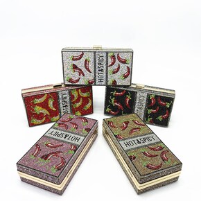 灿利新款烫钻辣椒包礼物晚宴包女士手包水钻满钻包ch...