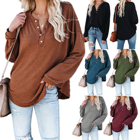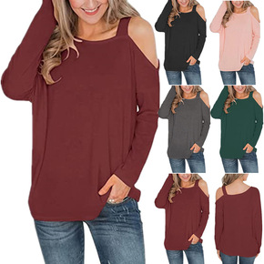 2021年欧美春季新款亚马逊WISH热卖纯色长袖圆...
