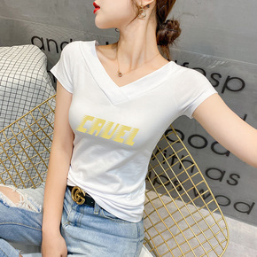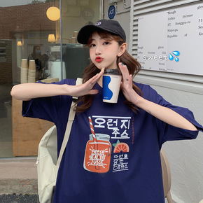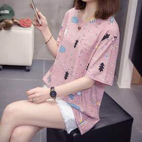 【9.9包邮】 外贸女装夏季新款短袖T恤女圆领印花...