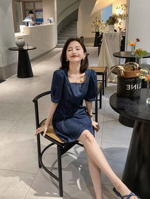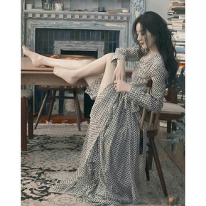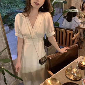 法式赫本天丝森系仙女裙2021薄款长裙V领收腰泡泡...