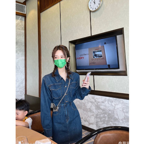 时尚街头原宿风气质长袖牛仔连衣裙女秋季新款小个子收...