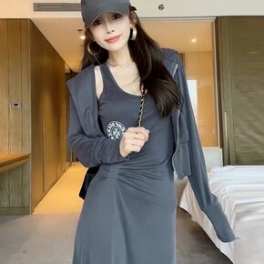 秋冬修身显瘦收腰打底针织连衣裙加厚套头毛衣女超长款...