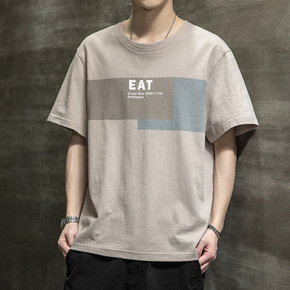 2021夏季新款短袖t恤男潮流宽松帅气半袖体恤纯棉...