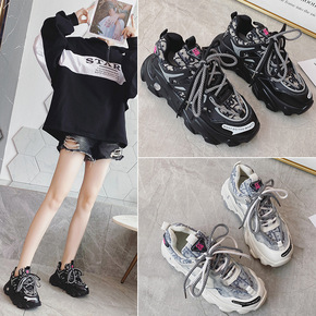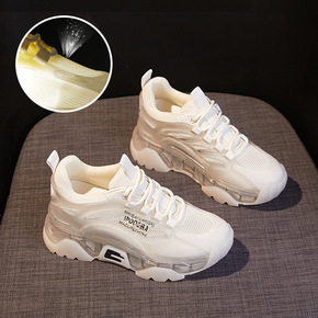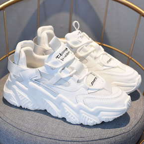 2021夏款透气运动鞋厚底内增高吸膜底老爹鞋女透气...