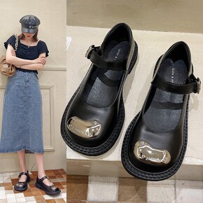 水钻玛丽珍鞋复古单鞋2021新款英伦风厚底日系中跟...