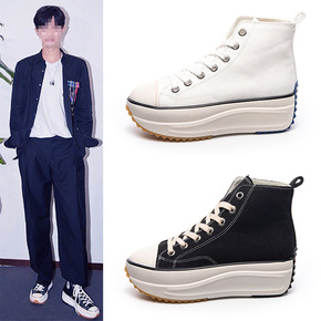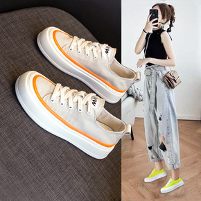 港味chic复古帆布鞋女2021春夏糖果色经典厚底...