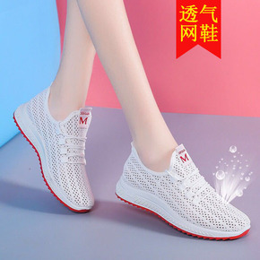 2021新款春夏网面平底休闲运动鞋子女地摊跑步鞋外...
