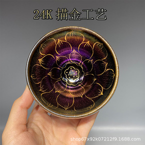 建阳天目黑瓷茶盏建盏曜变陶瓷描金盏大号品茗杯主人杯...