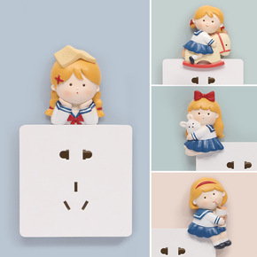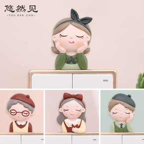 创意卡通开关贴墙面装饰女孩半立体树脂开关贴边框套装...