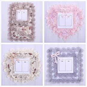 韩式布艺蕾丝开关套 86型墙壁插座辟火贴 免粘水洗...