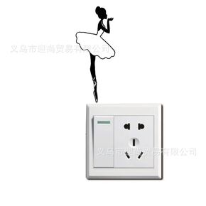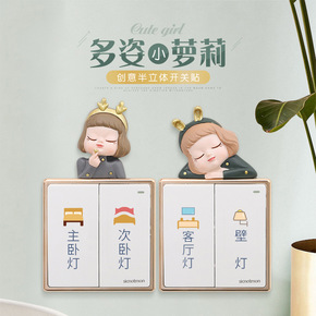 可爱卡通少女墙贴开关贴装饰保护套创意夜光标识贴纸插...