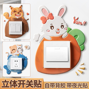 卡通夜光开关保护套开关贴墙贴客厅卧室创意灯开关装饰...