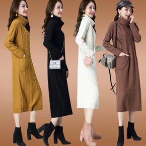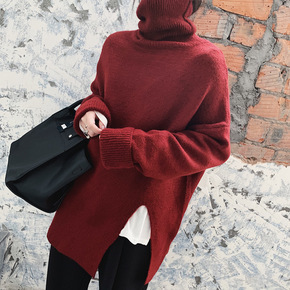 加绒/不加绒 长款过膝高领套头毛衣女新款宽松打底针...