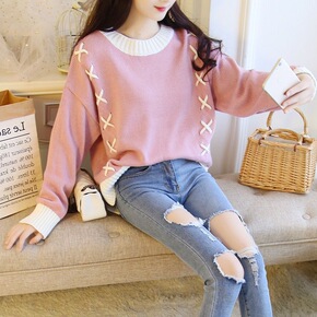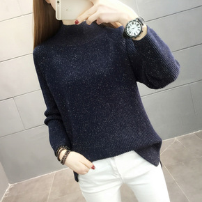 针织衫女宽松慵懒套头秋冬新款韩版前短后长开叉圆领短...
