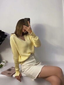 新品秋冬外贸女装欧美亚马逊颗粒绒v领开叉套头针织衫...