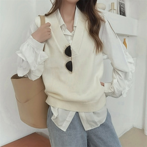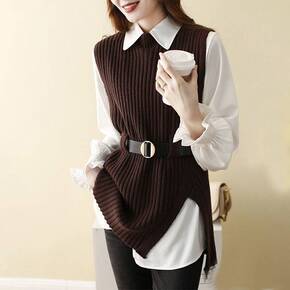 衬衫叠穿计划洋气减龄衬衫毛衣背心马甲两件套2021...