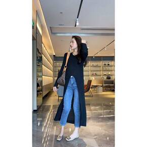宽松毛衣裙网红春秋新款毛衣开叉长款不规则气质百搭针...