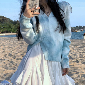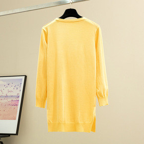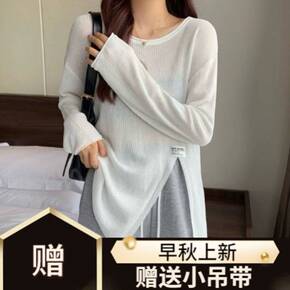 针织衫秋季长袖针织衫开叉宽松女早秋新款韩版冰丝纯色...