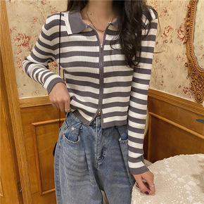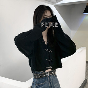 现货2022秋装新韩国chic风慵懒宽松短款针织开...