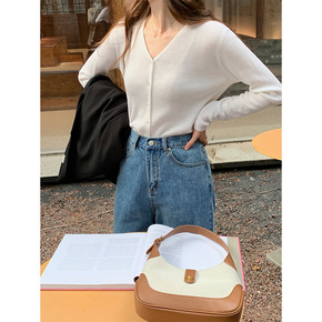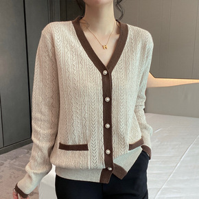 TG 羊毛单排扣V领长袖针织开衫女2022秋季新款...