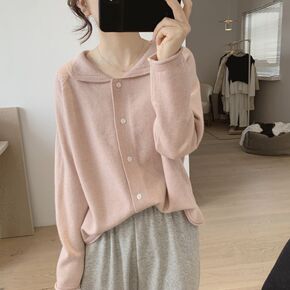 学院风气质休闲针织开衫女短款2022早秋新款慵懒宽...