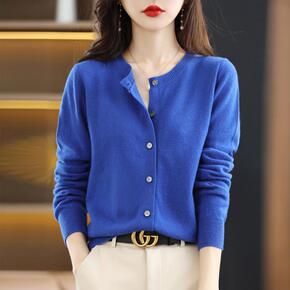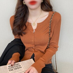直播供货春秋季针织衫女装开衫外套纯色圆领修身针织外...