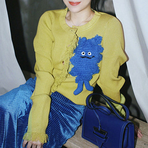 秀业韩国秋季新品原创设计感韩版复古撞色时髦针织衫开...