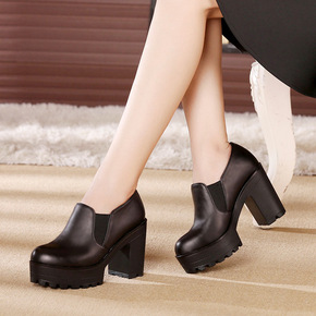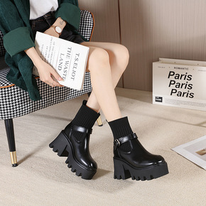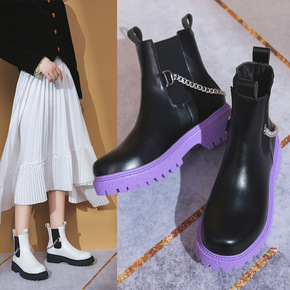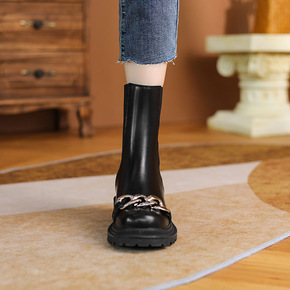 1801-2 铁链短靴女春秋单靴厚底英伦风烟筒靴粗...