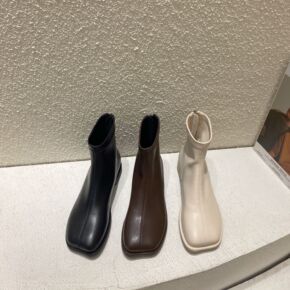 包邮粗跟短靴女2022年秋冬新款短筒瘦瘦靴马丁靴小...