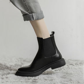 2022秋季新款韩版百搭真皮短靴网红切尔西靴短筒烟...