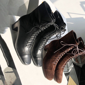 【清仓】欧美跨境女圆头复古女式皮靴纯色时装靴保暖短...