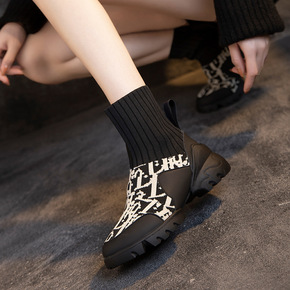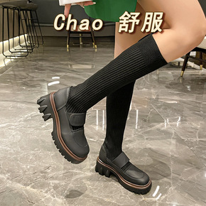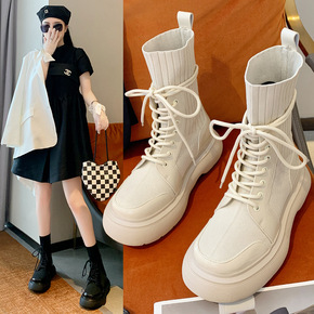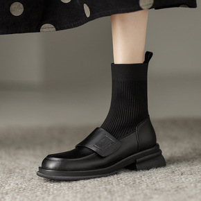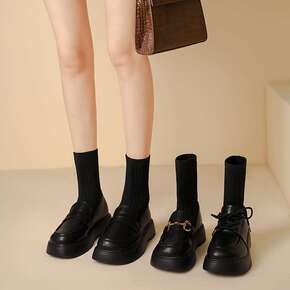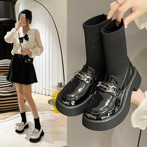 弹力袜靴乐福鞋连袜小皮鞋女英伦风马丁靴春秋单靴厚底...