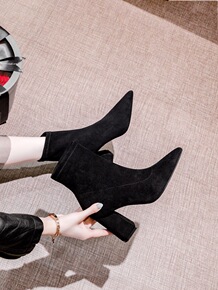 绒面圆头粗跟中跟过膝长靴长筒女弹力瘦瘦靴袜靴大码小...