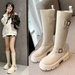 2022秋冬瘦瘦靴女英伦风弹力袜靴显瘦靴高筒靴长筒...